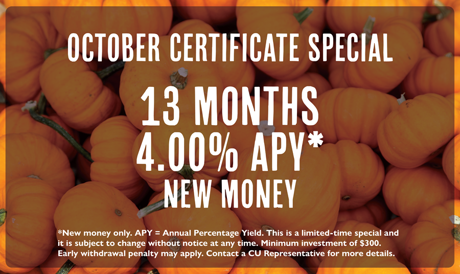 Ready to grow your savings? Log into Online Banking or our Mobile App, and look for Buy a Certificate —you’ll find it on the Home Page or under New Accounts. From there, just choose your preferred rate and term, then click Purchase Online to complete your transaction. It's quick, convenient, and designed to help your money go further—whenever and wherever it works best for you.